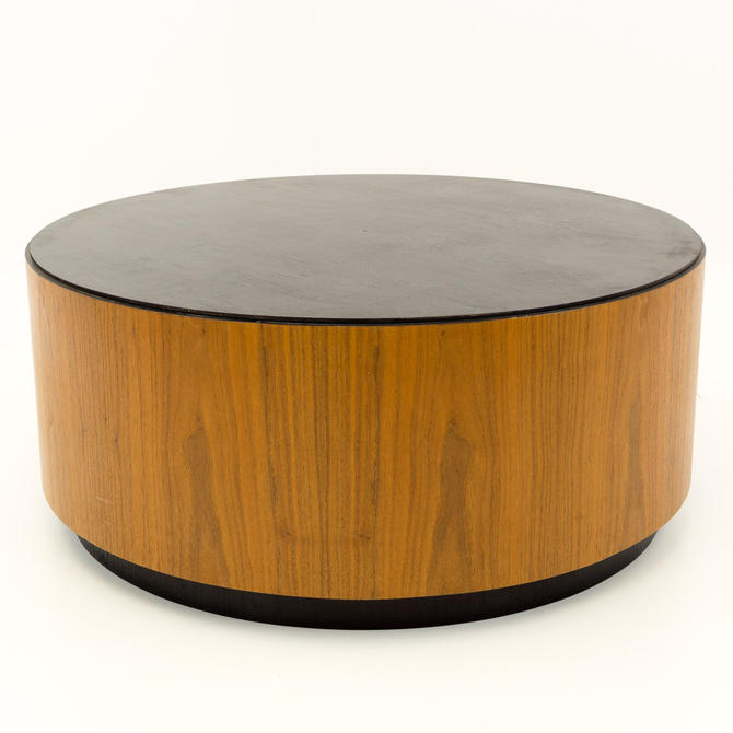 Mid Century Modern Walnut Large Drum Barrel Round Coffee